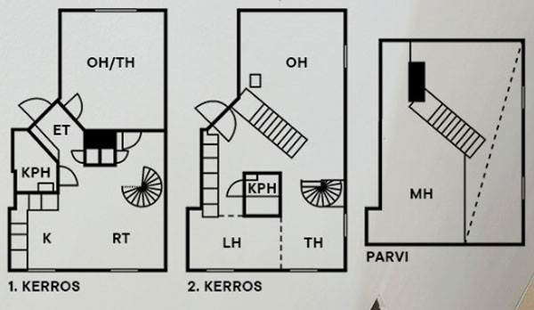 三层楼和陡峭的螺旋楼梯似乎让其他人比我们更害怕。Juha 和我都在三层的前线房子里长大。对我们来说,这就像公寓楼里的独立屋,没有任何陌生之处。家里有不同的气氛真是太好了。由于我们也经常在家工作,因此找到安静的工作空间真是太好了。艾莎很快就习惯了走楼梯。我们还没有放弃安全门,因为我们经常有不习惯陡峭楼梯的孩子。地板还可以让一大群人聚集在一起,这样孩子们可以在楼上安静地跑来跑去,大人可以在楼下集体准备食物。